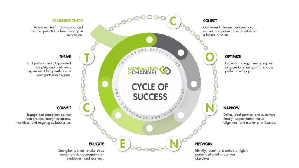 Accelerate channel performance with Connection2Channel’s “Cycle of Success” – a growth framework for building, growing, and optimizing partner relationships.